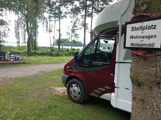 The aire was just a car park, but it was so hot that all the motorhomers got our chairs out and sat outside till bed time.